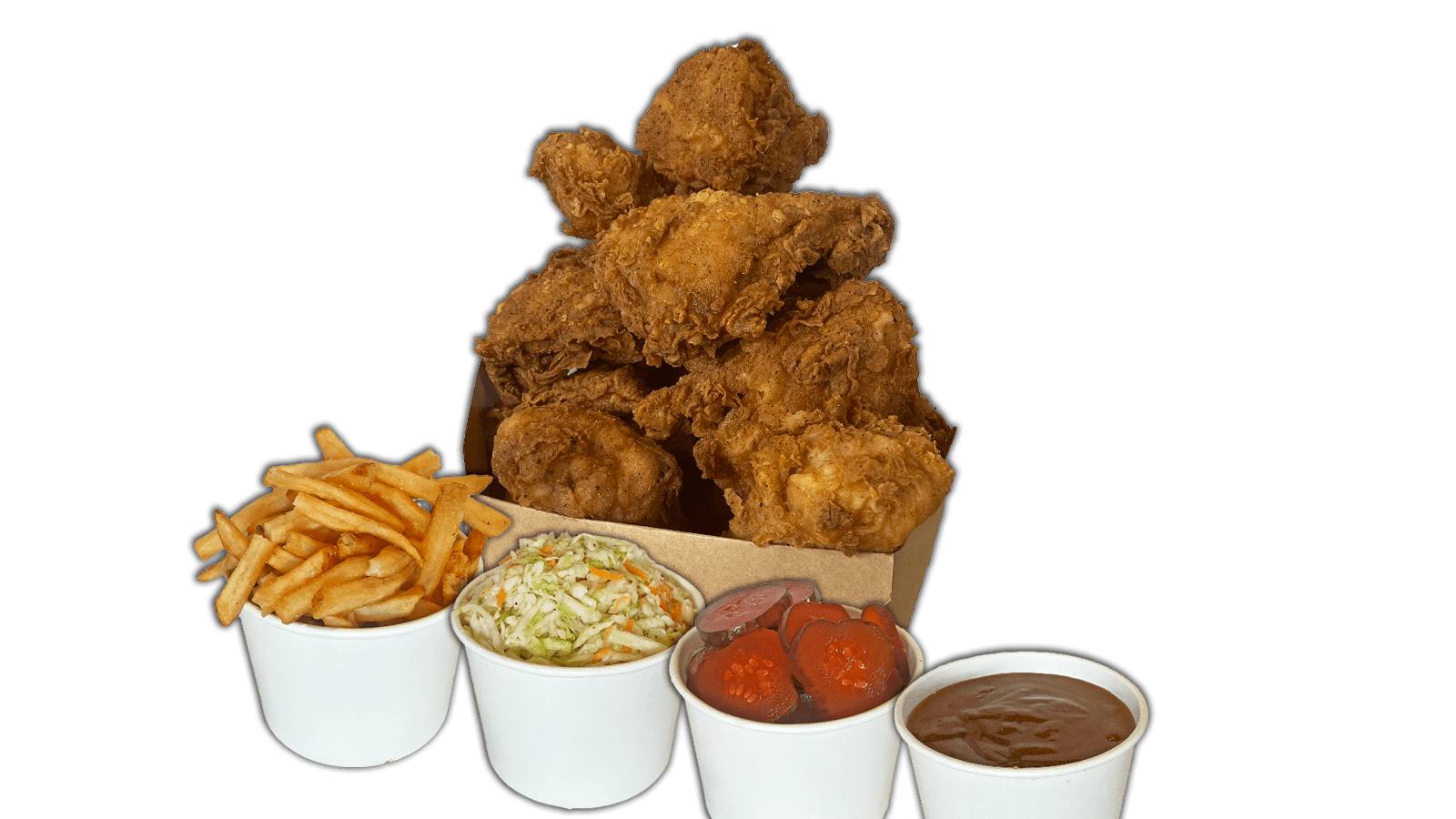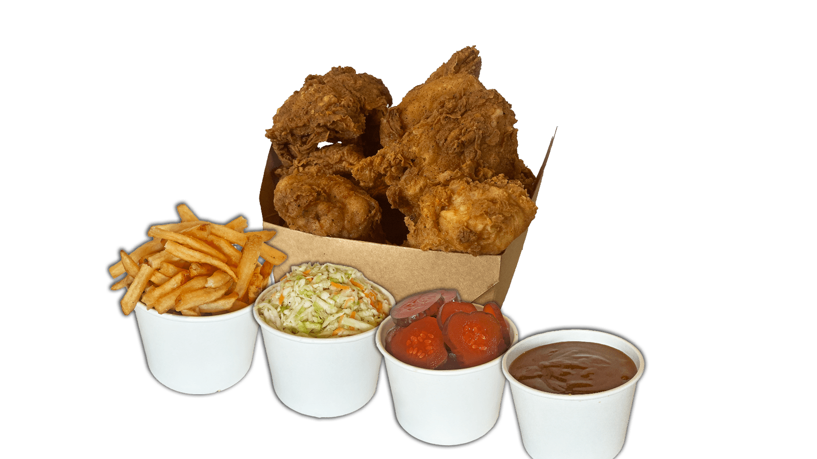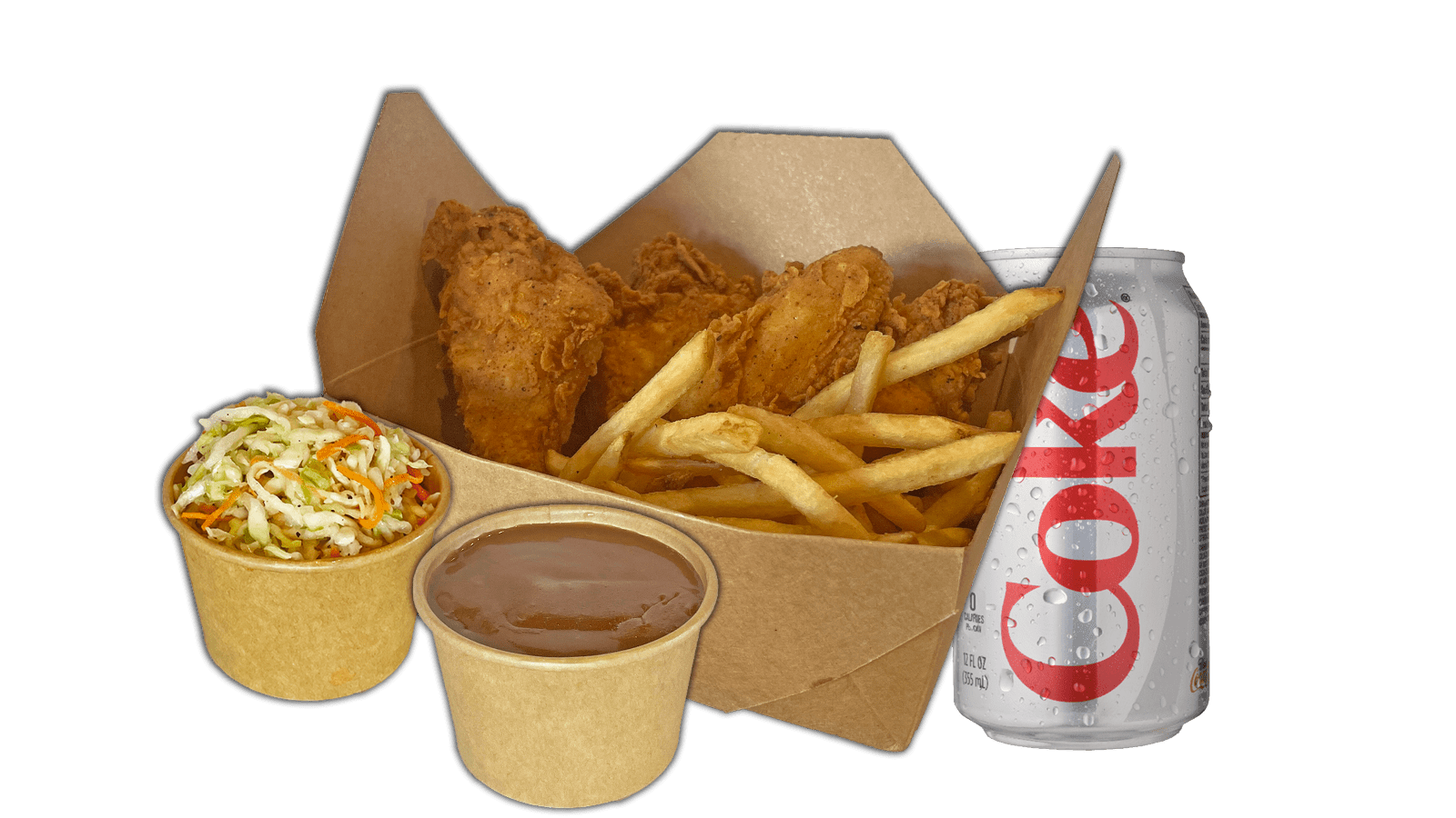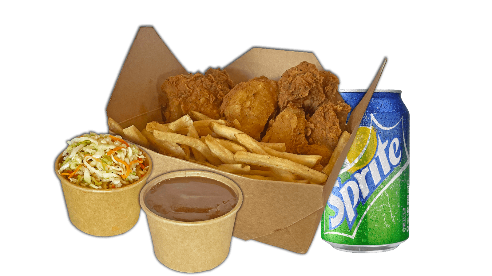 Crispy fried chicken, Southern Georgia style. Seasoned with our secret coating. The best way to get the south in your mouth. Served with fries, coleslaw, gravy and soft drink.